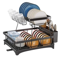 Dwupoziomowa suszarka do naczyń z odpływem – organizer na talerze, miski i sztućce
