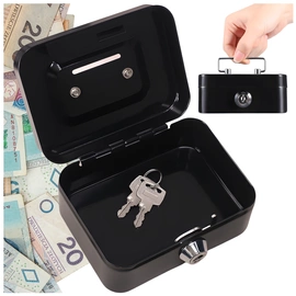 Metalowa kasetka na pieniądze z zamkiem i funkcją skarbonki – czarna mini sejf 8,5×11,5×5,5 cm