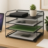 Metalowy organizer biurkowy A4 – czarny stojak na dokumenty z 4 półkami i tacką