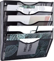 Naścienny organizer na dokumenty A4 – metalowy, 5 półek, czarny