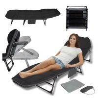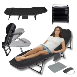 Leżak ogrodowy leżanka turystyczna składane łóżko plażowe 200x67x31cm + akcesoria czarne