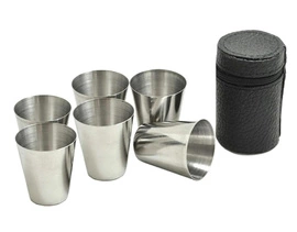 Zestaw 6 kieliszków ze stali nierdzewnej z etui – idealny na pikniki i plenerowe imprezy 6szt 30ml AG171B