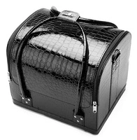Kuferek kosmetyczny na lampę UV i akcesoria, z regulowanym paskiem i dwupoziomowymi przegrodami czarny połysk