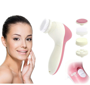 - Szczoteczka do pielęgnacji skóry twarzy i ciała, wyposażona w 5 wymiennych końcówek o różnym przeznaczeniu