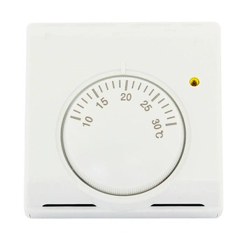 Termostat pokojowy, regulator temperatury. Wyposażony w wygodne, mechaniczne pokrętło do regulacji temperatury oraz diodę sygnalizacyjną (tryb pracy). Łatwy montaż oraz prostota obsługi (duże pokrętło). Umożliwia regulację temperatury w zakresie od 10 stopni do 30 stopni Celsjusza. Termostat umożliwia sterowanie ogrzewaniem (załączanie pompy obiegowej) lub chłodzenia (załączanie wentylatora). Produkt przeznaczony do użytku wewnętrznego.