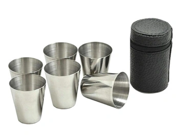 - 6 metalowych kieliszków o pojemności 30 ml każdy