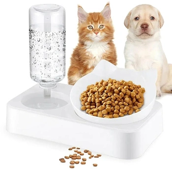 Automatyczny dozownik wody oraz miska na karmę dla kota. Nachylenie miski pod kątem 15 stopni zdecydowanie ułatwia pobieranie pokarmu przez naszego pupila. Butelka na wodę o pojemności 0,5 L umożliwia zwierzęciu bieżący dostęp do świeżej wody. Dzięki specjalnemu zaworowi urządzenie automatycznie dolewa wodę ze zbiornika do miski. Kompaktowa konstrukcja sprawdzi się w małych kuchniach i korytarzach.