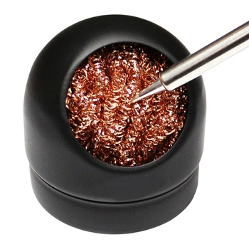 Czyścik do czyszczenia grotów lutownicy. Solidna metalowa podstawka z dużym otworem, została wypełniona metalowymi wiórkami, która doskonale sprawdzi się przy intensywnym lutowaniu wymagającym częstego czyszczenia grotu. Czyścik jest bezobsługowy (nie wymaga czyszczenia na mokro), nie obniża również temperatury grotu.