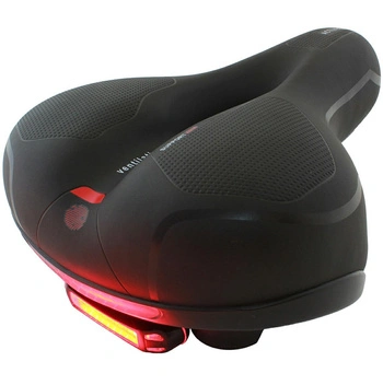 Niezwykle wygodne, piankowe siodełko rowerowe. Doskonałe dla osób odczuwających dyskomfort na standardowych siodełkach w czasie dłuższej jazdy na rowerze. Wyposażone w specjalny, anatomiczny otwór poprawiający wentylację oraz podwójną amortyzację zwiększającą komfort jazdy. Zawieszone na 2 prętach co znacznie zwiększa jego stabilność. Dodatkowa, czerwona lampka LED w tylnej części siodełka umożliwia rezygnację z klasycznej lampki z tyłu roweru.
