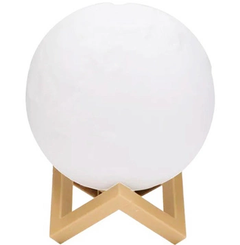 Kompaktowa lampka LED w kształcie księżyca. Wyposażona w wygodny włącznik / wyłącznik. Zasilana za pomocą dołączonej w zestawie baterii. Świetnie sprawdzi się jako klasyczna lampka nocna bądź gadżet w dziecięcym pokoju. Lampka świeci światłem ciepłym, białym. W komplecie z wygodną, drewnianą podstawką.