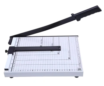 - Metalowa ręczna gilotyna do papieru umożliwia szybkie i precyzyjne cięcie aż do 12 kartek papieru (80g/m²). Wyposażona w siatkę mierniczą w calach i centymetrach oraz wyróżnione standardowe rozmiary papieru (A4, A5, B5 i inne).