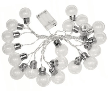 Girlanda świetlna o długości aż 5 metrów. Wyposażona w aż 20 okrągłych, ozdobnych żarówek z energooszczędnymi diodami LED, emitującymi światło o barwie ciepłej białej. Wspaniały element dekoracyjny do użytku wewnętrznego lub zewnętrznego (np. w ogrodzie). Łańcuch lampek jest zasilany za pomocą 3 baterii typu AA 1,5V, całkowicie niezależnie od sieci elektrycznej. Klasa szczelności IP20 zapewnia bezpieczne użytkowanie w każdych warunkach atmosferycznych. Girlanda świetnie sprawdzi się podczas wszelkich plenerowych imprez okolicznościowych.