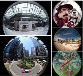 - Obiektyw FISH EYE (rybie oko) - uzyskujemy zaokrąglone, beczkowate zniekształcenie obrazu
