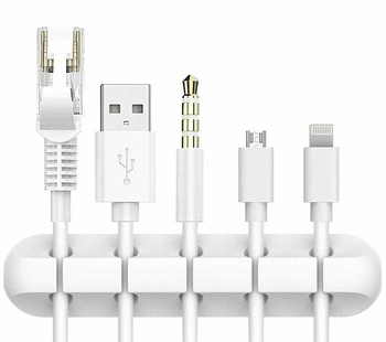 Samoprzylepny wieszak służący jako organizer na maksymalnie 5 kabli. Dedykowanym miejscem montażu jest brzeg biurka lub stołu. Zapobiega splątaniu przewodów ułatwiając ich schludne uporządkowanie. Jest bardzo wytrzymały - doskonale trzyma się powierzchni po przyklejeniu dzięki zastosowaniu mocnego kleju.
