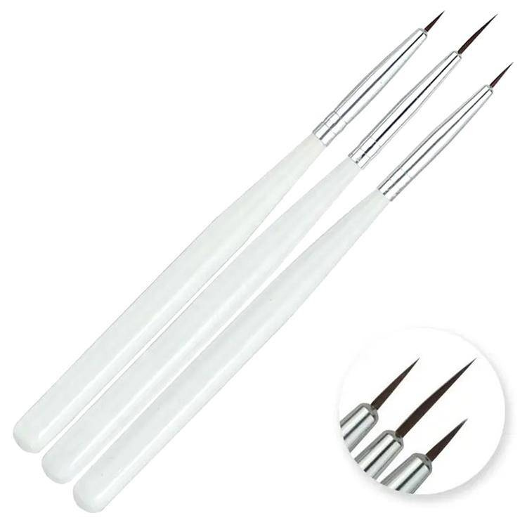 Zestaw 3 profesjonalnych pędzelków kosmetycznych, powszechnie stosowanych do żelu i zdobień. Przeznaczone są do stylizacji paznokci metodą żelową, jak również do pracy przy manicure, pedicure oraz zdobnictwie. Zapewniają najwyższy komfort pracy. Estetyczne wykonanie i wysokiej jakości włosie sprzyjają dużej precyzji. Różnorodność pędzelków pozwala wybrać odpowiednie narzędzie do każdego zadania.