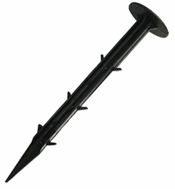 - Zestaw 100 szpilek do mocowania agrowłókniny, wykonanych z wytrzymałego tworzywa sztucznego. Ząbkowana konstrukcja z ostrym zakończeniem ułatwia wbicie w glebę, a szeroka główka zapewnia szybkie i pewne mocowanie.