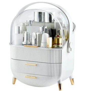 - Praktyczny organizer na kosmetyki z przezroczystym akrylowym pojemnikiem i dwoma szufladkami. Estetyczny, z funkcjonalną rączką do łatwego przenoszenia. Doskonały do przechowywania kosmetyków i drobiazgów.