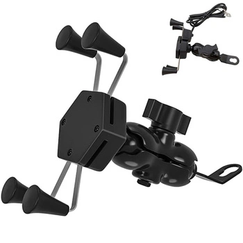 - Wysokiej jakości uchwyt do telefonu, pasujący do wszystkich modeli. Zapewnia stabilność urządzenia dzięki silikonowym zaczepom. Wbudowany port USB umożliwia ładowanie telefonu podczas jazdy. Prosty montaż na lusterku motocykla z pełną regulacją 360°.