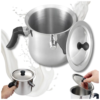 - Garnek do mleka 1,5 L z podwójnymi ściankami, gwizdkiem i nieprzewodzącym ciepła uchwytem. Chroni przed wykipieniem i przypaleniem. Do kuchenek gazowych i elektrycznych.