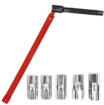 Stalowy klucz łamany do montażu instalacji sanitarnych. Zdecydowanie ułatwia montaż armatury i baterii łazienkowych. Konstrukcja wyposażona została w przegub, co umożliwia zagięcie klucza pod dowolnym kątem. Długa rękojeść zapewnia dojście do zdecydowanej większości instalacji. W komplecie znajduje się aż 5 wymiennych nasadek z głowicami w rozmiarze od 8 mm do 12 mm.