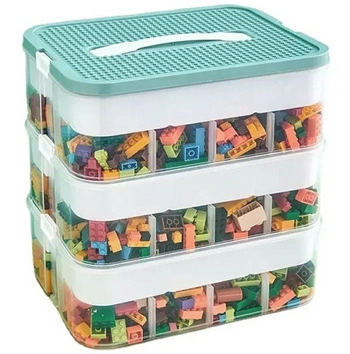 - Składany organizer na klocki i zabawki z 3 demontowalnymi poziomami i przegródkami, idealny do pokoju dziecięcego. Wygodny uchwyt do przenoszenia i klipsy zapewniające łatwe zamykanie. Pomaga utrzymać porządek, zachęca dzieci do sprzątania.
