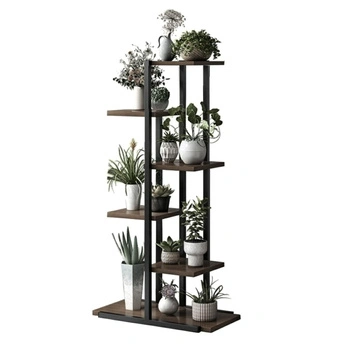 - Wielopoziomowy kwietnik z 6 drewnianymi półkami i stalową konstrukcją. Doskonały do aranżacji roślin zarówno wewnątrz, jak i na zewnątrz. Stabilny i funkcjonalny, z szeroką dolną półką. Idealny do ogrodu, tarasu lub mieszkania.