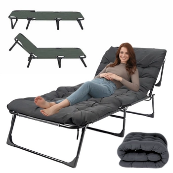 Leżanka ogrodowa leżak turystyczny regulowany łóżko plażowe + materac + poduszka 190x70x30cm szare