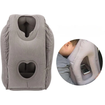 Dmuchana poduszka podróżna welurowa z pokrowcem – szara, ergonomiczna i kompaktowa