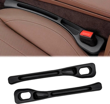 - Zestaw 2 czarnych wypełniaczy szczeliny między fotelami auta. Chronią przed zabrudzeniami i gubieniem drobiazgów. Z wycięciem na pas i 2 pojemnikami. Pasują do większości samochodów.