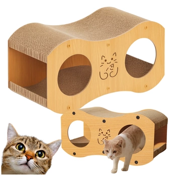 Funkcjonalny drapak, domek i leżanka w jednym – idealne miejsce dla Twojego kota do zabawy, ostrzenia pazurków i odpoczynku. Wykonany z ekologicznej tektury falistej, jest przyjazny dla środowiska, lekki i wytrzymały. Minimalistyczny design w odcieniach drewna sprawia, że pasuje do każdego wnętrza. 🏠