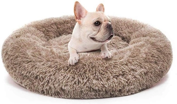 - Miękkie, beżowe legowisko dla psa lub kota o średnicy 97 cm. Wypełnione pluszem, z antypoślizgowym spodem i grubymi ściankami. Zapewnia komfort, ciepło i bezpieczeństwo pupila.
