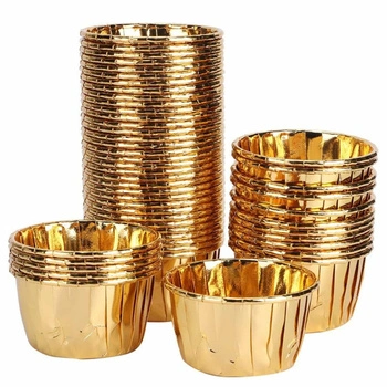 - Eleganckie złote foremki do babeczek. Zestaw 50 sztuk, odporne na wysoką temperaturę. Idealne do pieczenia muffinek i deserów na przyjęcia i uroczystości.