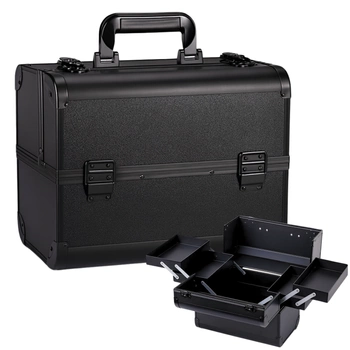 Kuferek kosmetyczny mobilny L czarny – walizka na kosmetyki, aluminiowa, 3-segmentowa