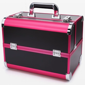 - Stylowy czarno-różowy kuferek kosmetyczny z 4 półeczkami i dużą dolną komorą. Idealny na kosmetyki, lakiery i akcesoria. Lekki, trwały i wygodny w transporcie — doskonały dla profesjonalistek i miłośniczek makijażu.