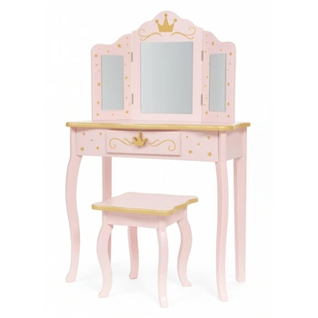 - Różowa toaletka Pink Dream z potrójnym lustrem i taboretem. Idealna dla dziewczynki – funkcjonalna, bezpieczna i bajecznie urocza. Szuflada i szeroki blat pomieszczą wszystkie skarby.