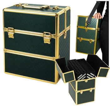 Kufer kosmetyczny XXL na makijaż lakiery organizer dla kosmetyczki zielono-złoty